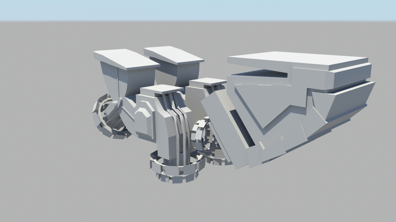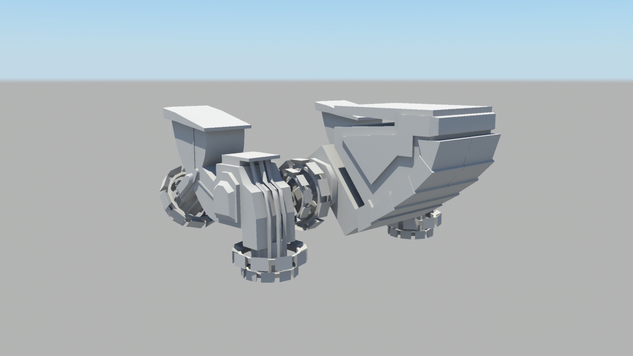 This is how I imagine the craft to land, the aliens have high tech (or magical) magnets that hold the jets to the main core. When landing these rotate flipping the back pieces 180 degrees to land “feet down”. The front armour plates slide up and a door and walk path is revealed.